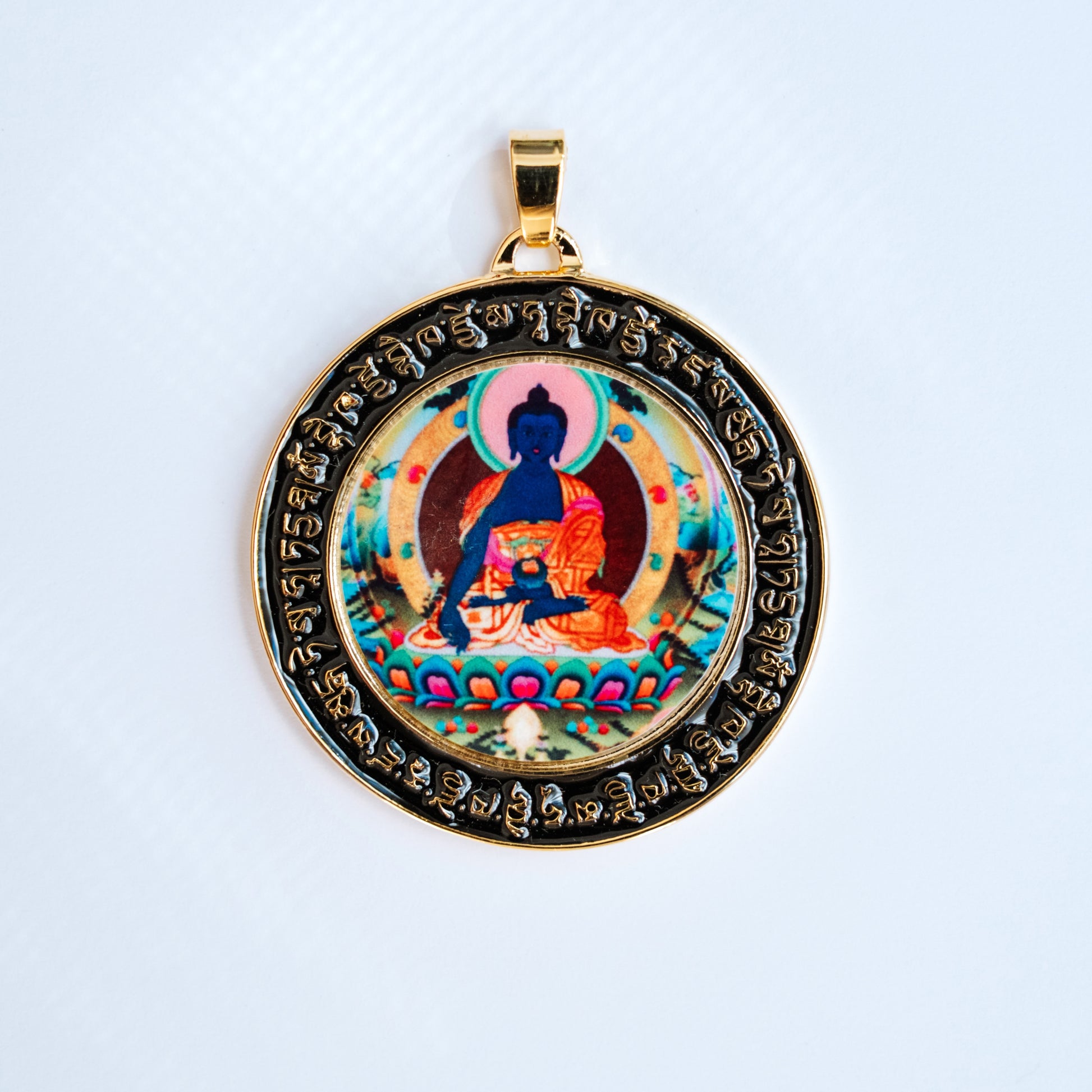Medicine Buddha Pendant – 40mm, 24ct Gold Plated, Blessed by Dzogchen Rinpoche